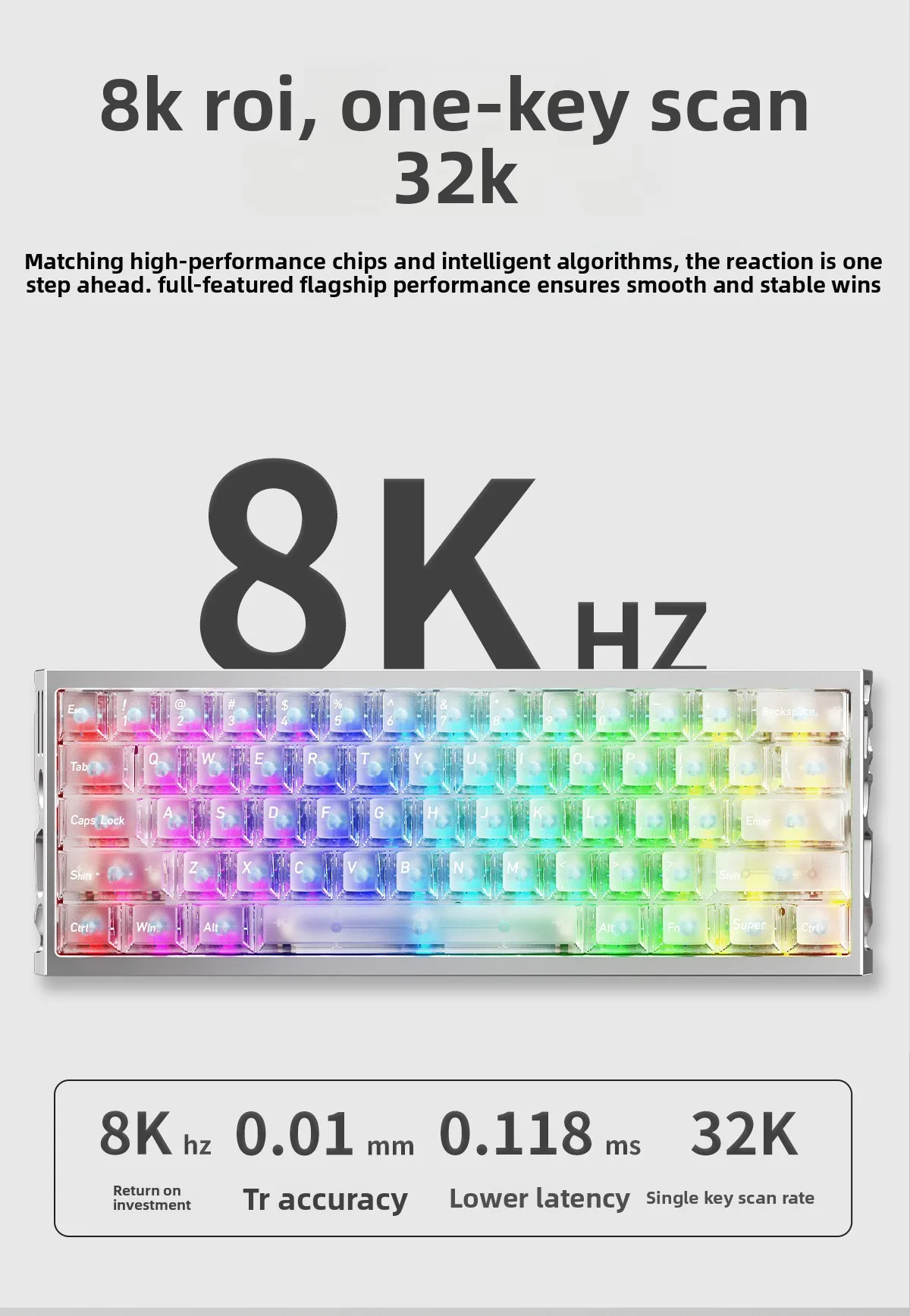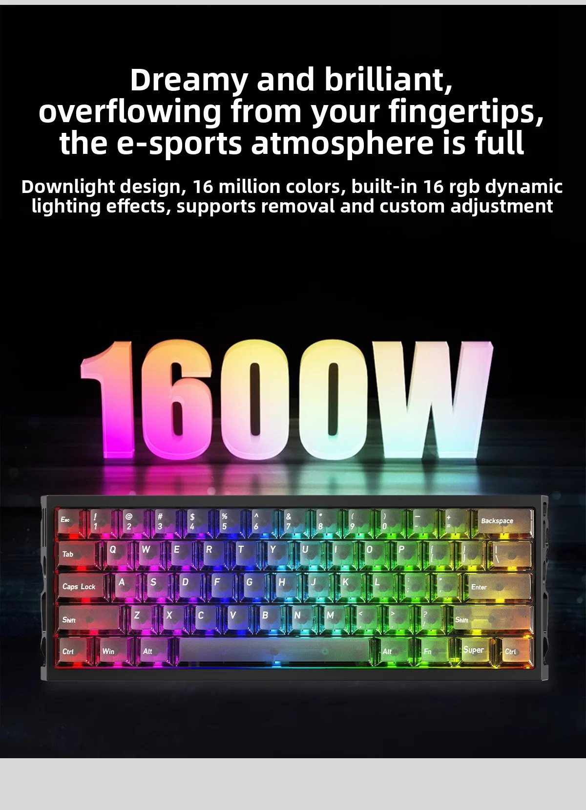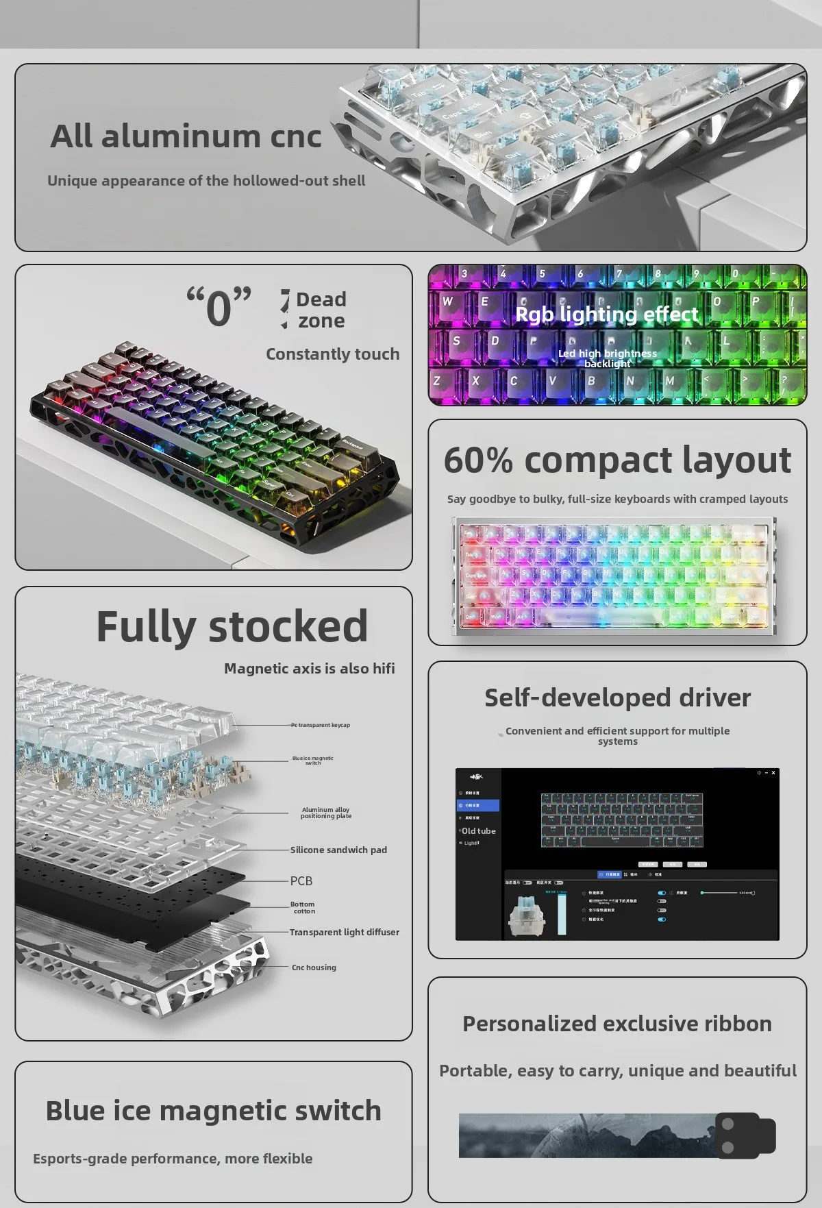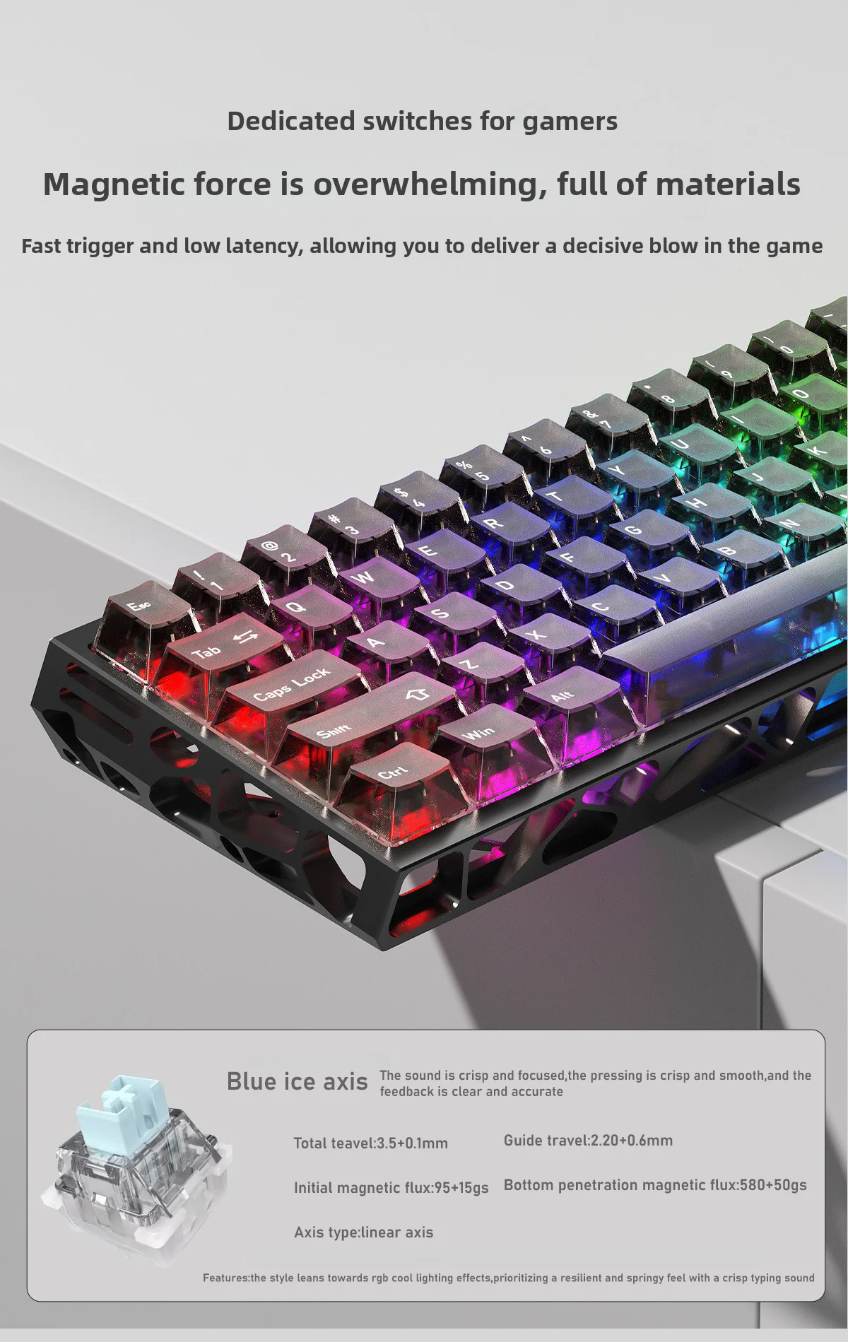 Experience next-level gaming with our wired mechanical gaming keyboard, designed specifically for esports enthusiasts and casual gamers alike. Featuring a sleek 61-key compact layout, this keyboard is perfect for saving space on your setup while delivering powerful performance (Model: 29310329MM). Weighing just 536.8g, it's lightweight and portable, making it an excellent choice for gamers on the go, Equipped with high-performance Hejin magnetic switches, this keyboard provides ultra-fast trigger and reset capabilities. With adjustable key travel ranging from 0.1 to 2.3mm, you can customize your typing experience to match your unique gaming style. The fully hot-swappable switches allow for effortless personalization, so you can easily upgrade or change your switches based on your preferences, Durability is key, and our PBT five-sided dye-sublimated keycaps resist wear and oil buildup, ensuring long-lasting clarity and a premium feel. Enjoy esports-grade low latency and full N-key rollover for precise, responsive gameplay, giving you a competitive edge, Enhance your gaming atmosphere with built-in RGB backlighting, featuring 16 million customizable colors for a truly immersive experience. The strategically placed bottom LED illuminates your setup, while internal sound-dampening cotton minimizes noise for a quieter environment, Designed for compatibility, our keyboard connects seamlessly via a 1.5m Type-C cable, supporting both Windows and Mac systems for plug-and-play convenience. Take control with customizable macros and driver settings, plus OEM services available for tailored solutions, Elevate your gaming experience with a perfect blend of performance, durability, and personalization. This wired mechanical gaming keyboard is your ultimate gaming companion, whether you're competing at the highest level or enjoying casual gameplay