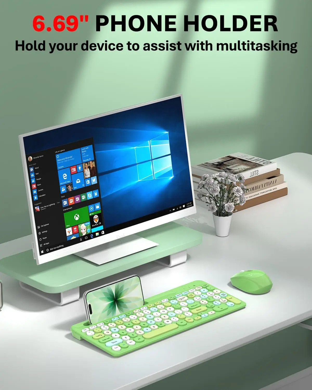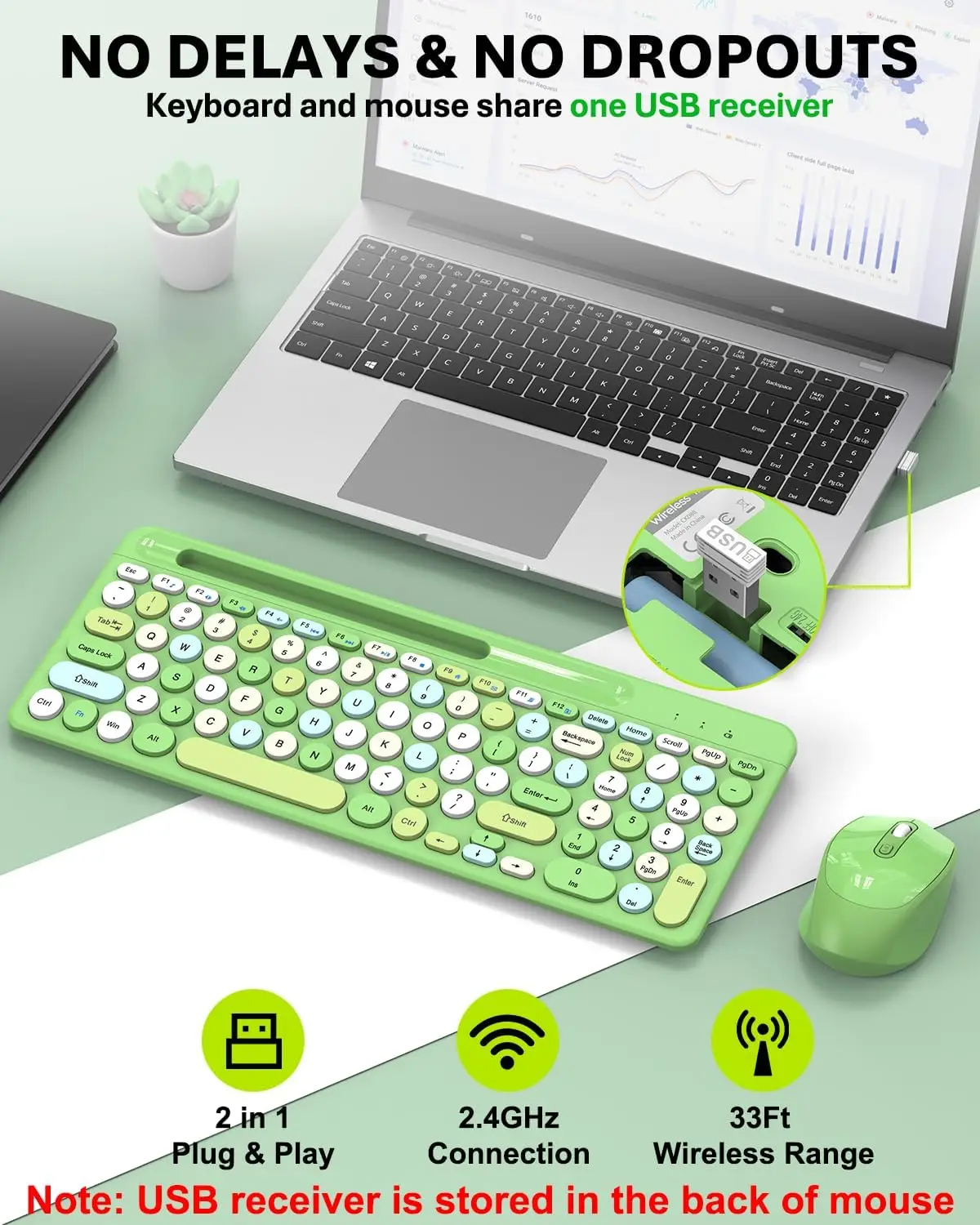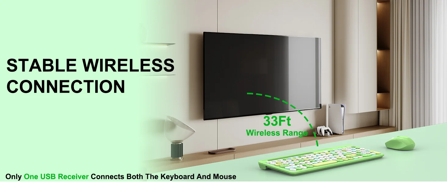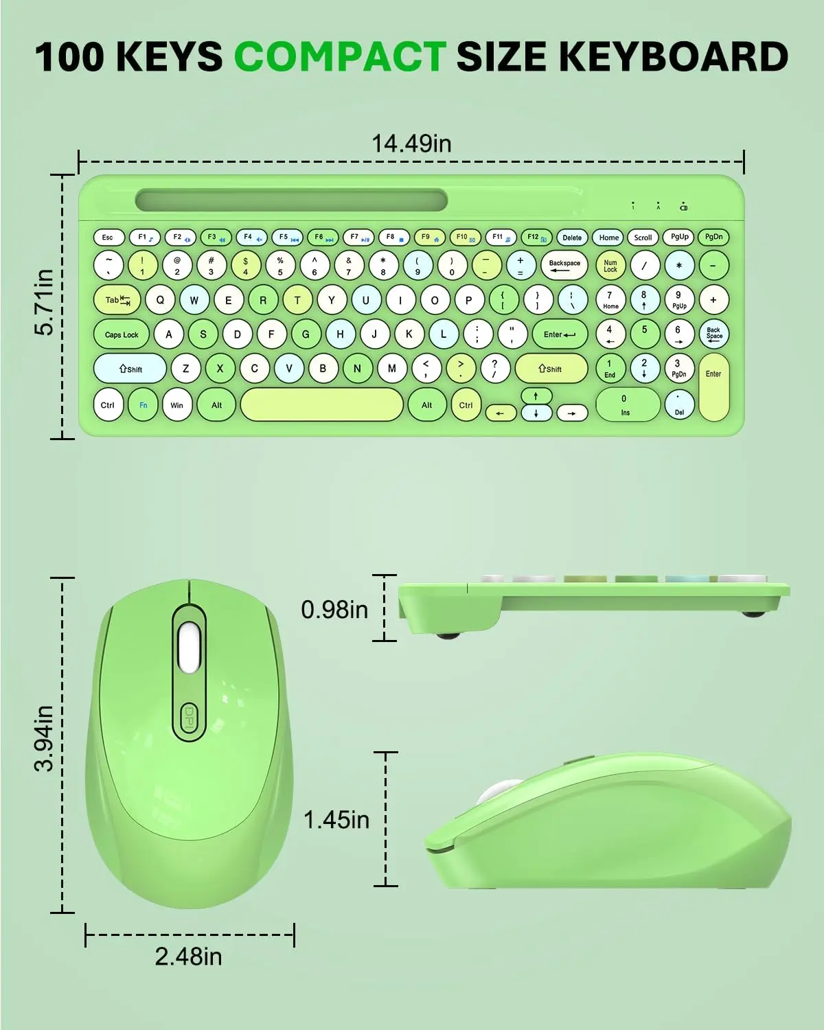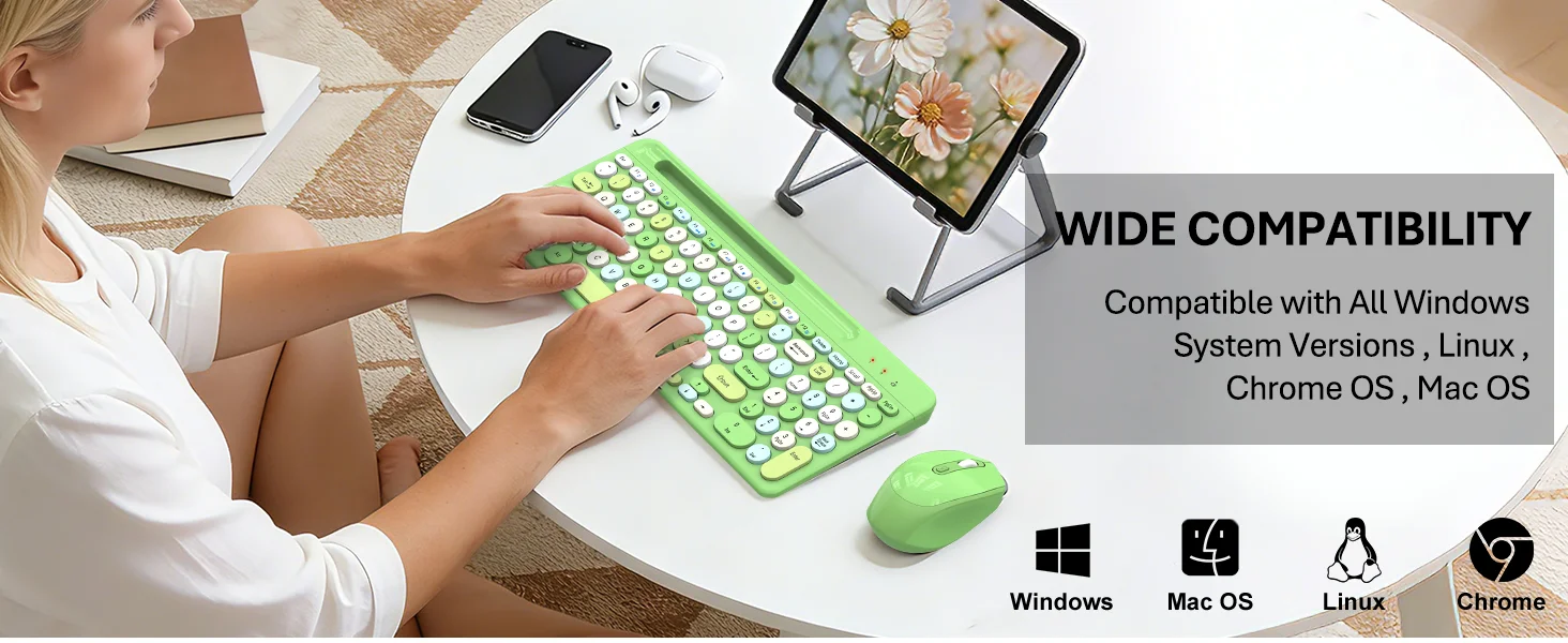 Upgrade your workspace with this 100-key wireless keyboard and mouse combo, designed for optimal performance and efficiency. Its compact and practical layout not only saves valuable desktop space but also enhances your productivity for daily office tasks, studying, and leisure activities. Featuring advanced 2.4G wireless connectivity, this combo ensures seamless plug-and-play functionality with a reliable, lag-free signal, eliminating the clutter of cables and effortlessly connecting to computers, laptops, and other devices, Experience vibrant backlighting that adds a modern touch to your setup, while the keyboard's comfortable keycaps are designed for quiet typing and lasting durability. The inclusion of multimedia shortcut keys streamlines your operations for quicker access to essential functions, The ergonomic mouse is equipped with adjustable DPI settings, providing precise positioning and smooth control, helping to reduce fatigue during prolonged use. Engineered with a low-power design and intelligent sleep mode, this combo extends battery life for uninterrupted performance. Stylish and colorful, it's the perfect choice for students and professionals looking to personalize their workspaces with both aesthetics and functionality
